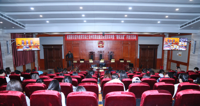 “现在开庭!”随着庄严的法槌声敲响,一场刑事案件在江苏师范大学泉山校区模拟法庭(徐州铁路运输法院巡回法庭)正式开庭。4月15日下午,江苏师范大学法学院举办校园普法宣传教育活动之徐州铁路运输法院巡回审判暨“模拟法庭”开放日活动,携手徐州铁路运输法院,将法院庭审请进了校园。徐州铁路运输法院相关领导、江苏师范大学法学院相关领导、师生代表150余人旁听了庭审。
