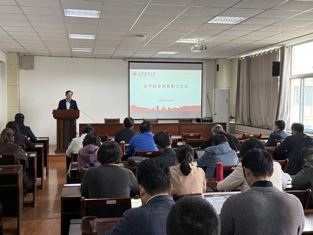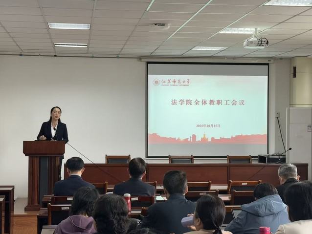10月15日下午,法学院召开全体教职工会议,会议由学院党委书记庄园主持。