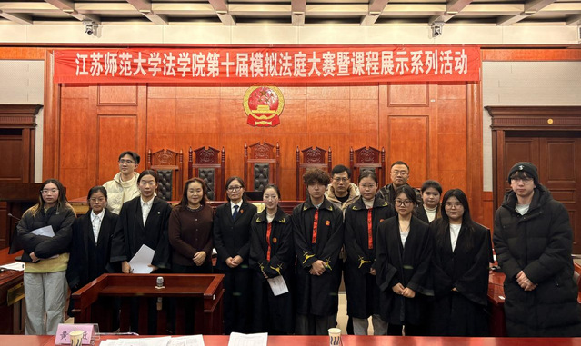 2025年12月24日13时,民事案件的模拟法庭课程展示在江苏师范大学泉山校区17号楼100B模拟法庭顺利进行。本次展示特别邀请了徐州市铜山区人民法院审委会专职委员黄敏法官担任评委,相关的校内、校外指导老师作为特邀嘉宾到现场观摩。