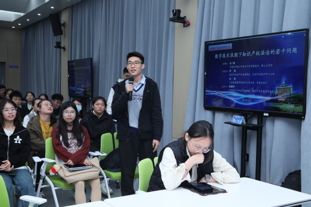 在提问互动的环节,参与本次报告的同学们纷纷踊跃提问发言。马教授高度肯定了同学们提问的质量,并且非常有耐心地为大家答疑解惑。同学们普遍表示受益匪浅。本次知识产权实务课堂在大家热烈讨论的氛围中圆满结束。