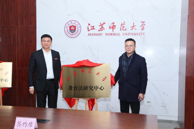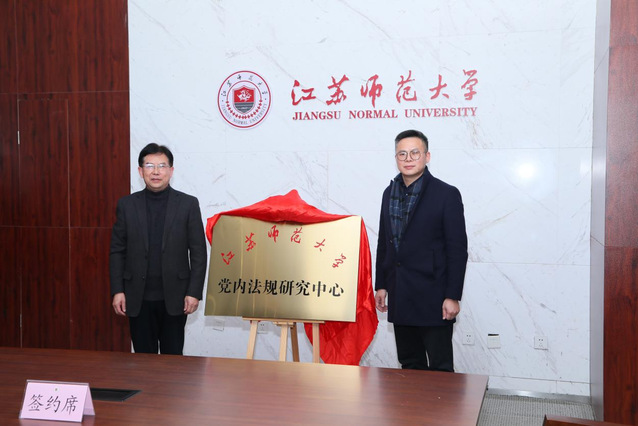 江苏师范大学党委副书记蔡国春、北京东卫(南京)律师事务所主任陈斌为成立江苏师范大学教育法学研究中心举行揭牌仪式。江苏师范大学原党委副书记、副校长刘广登、北京东卫(南京)律师事务所主任陈斌为成立江苏师范大学党内法规研究中心举行揭牌仪式。