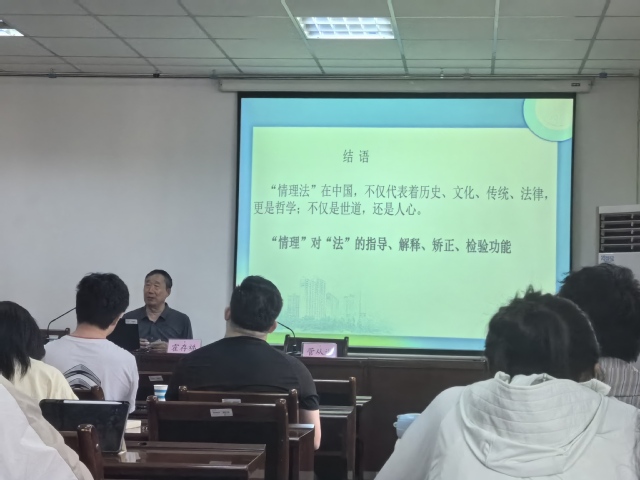 霍存福教授在讲座开始时简要介绍了“情理法”研究的总体情况。他指出,自上世纪90年代始,中国大陆学者张晋藩、杨永华、俞荣根、李贵连、朱勇、郭建、梁治平、范忠信等,先后就情理法、法意与人情、情法关系、法理与情理等主题进行过热烈讨论;进入21世纪,则有柏桦等人的作品。相比而言,我国台湾学者在上世纪50年代,陈顾远先生就曾撰专题论文;80年代初,日本滋贺秀三先生,著有长文发表。霍教授相信,“情理法”是中国法律史学研究领域,迟早会触及的经典论题之一。