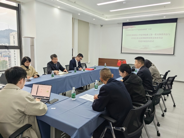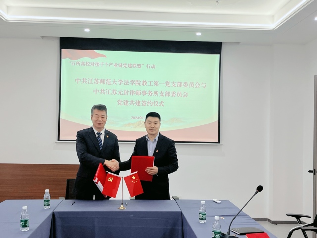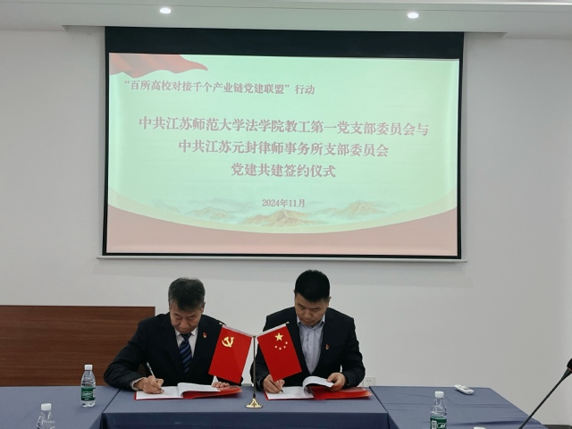 为深入贯彻习近平总书记关于“江苏要在强链补链延链上展现新作为”的重大要求,认真落实省委打造具有全球影响力的产业科技创新中心工作推进会部署安排,面推进“百所高校对接千个产业链党建联盟”行动,11月19日,江苏师范大学法学院教工第一党支部与江苏元封律师事务所党支部开展了高校对接产业链党建联盟签约仪式。